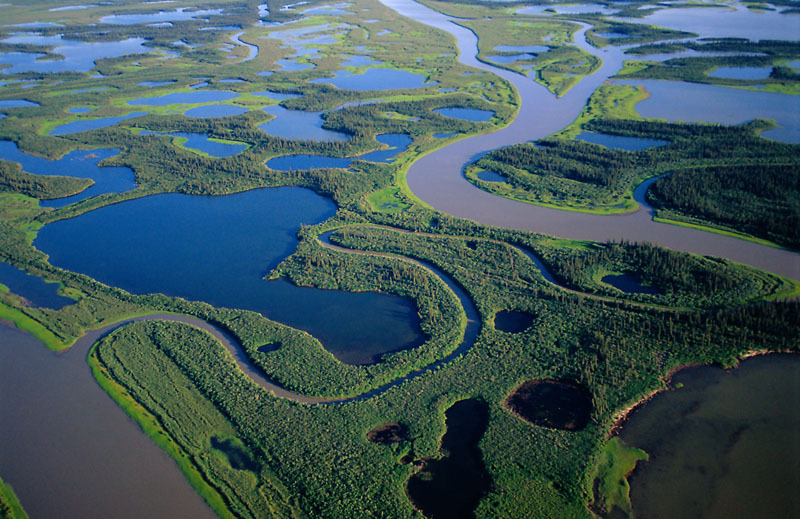 Taiga forest, CanadaVue aérienne de la taïga, dans le delta du fleuve Mackenzie, Territoires-du-Nord-Ouest. © Staffan Widstrand, WWF