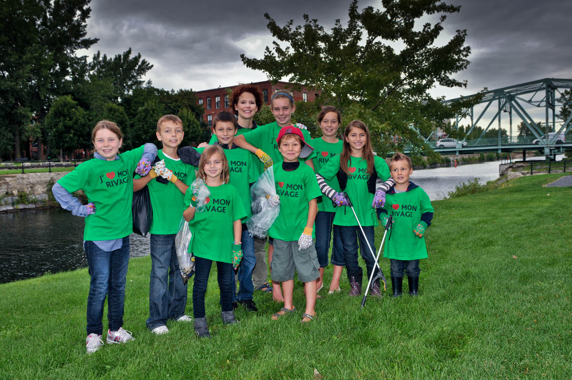 Entre deux averses, ces jeunes ont revêtu leurs gants et leur plus beau sourire afin de nettoyer une partie du rivage qui longe le Canal Lachine, à quelques pas du marché Atwater à Montréal. Même si les berges semblaient propres au premier coup d’oeil, ils ont réussis à retirer trois sacs de déchets et de matières recyclables en à peine deux heures.