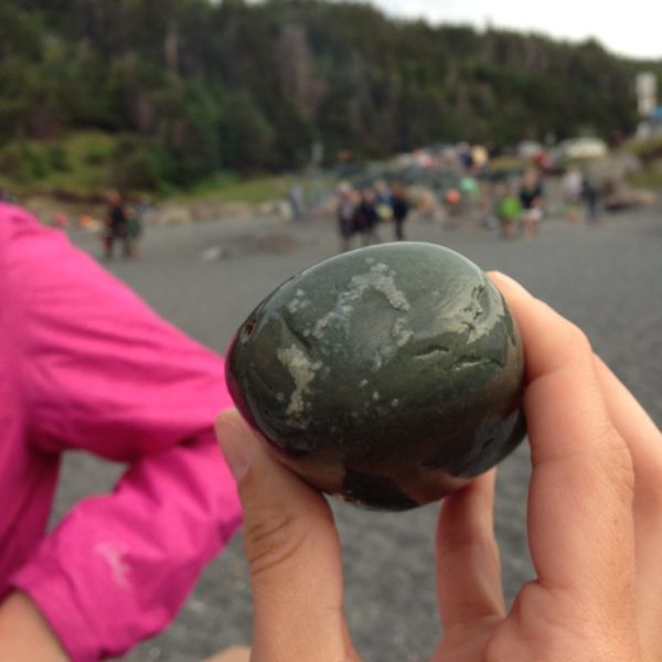 J’ai eu le privilège d’être invitée à me rendre sur cette magnifique plage qui détenait autrefois les conditions propices pour les capelans, dont un gravier de taille favorable tout près du littoral. Mais il y a 10 ans, une large partie de la plage était utilisée comme carrière. En conséquence, la plage s’est abaissée et a balayé vers l’arrière le gravier permettant la fraie. Aujourd’hui, les blocs de roches sur le rivage rendent la fraie du capelan impossible sur la majorité de cette zone.