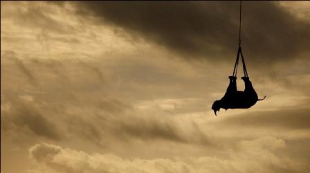 Mais pourquoi ces pauvres bêtes voyagent-elle dans les airs la tête en bas sur des distances de 1500 kilomètres? Eh bien il s’agit d’une nouvelle technique de capture qui est en fait beaucoup plus douce pour un rhinocéros à qui l’on a administré un tranquillisant; on les transportait auparavant dans des camions ou par voie aérienne dans des filets. Il s’avère que de suspendre un rhinocéros endormi par les chevilles permet de réduire la durée de sédation, et ne nuit pas à sa respiration comme le faisait le transport en filet. Et puis, grâce à cette nouvelle méthode, le transport ne dure qu’une dizaine de minutes et l’animal ne souffre pas du tout.