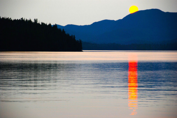 Un monde oublié, sauvage, un pays où le temps s’est arrêté. Un silence éclatant résonne parmi les géants endormis. La brume fantomatique descend des gratte-ciels façonnés par la nature, s’accroche aux grandes épinettes de Sitka qui peuplent montagnes et vallées escarpées et baigne d’un calme surréel l’air que l’on respire. Je me réveille avec cette impression de plénitude née de la paix d’une aube ponctuée du doux crépitement de la pluie sur mon toit. Bruits réconfortants, apaisants à l’oreille, chauds à mon cœur.