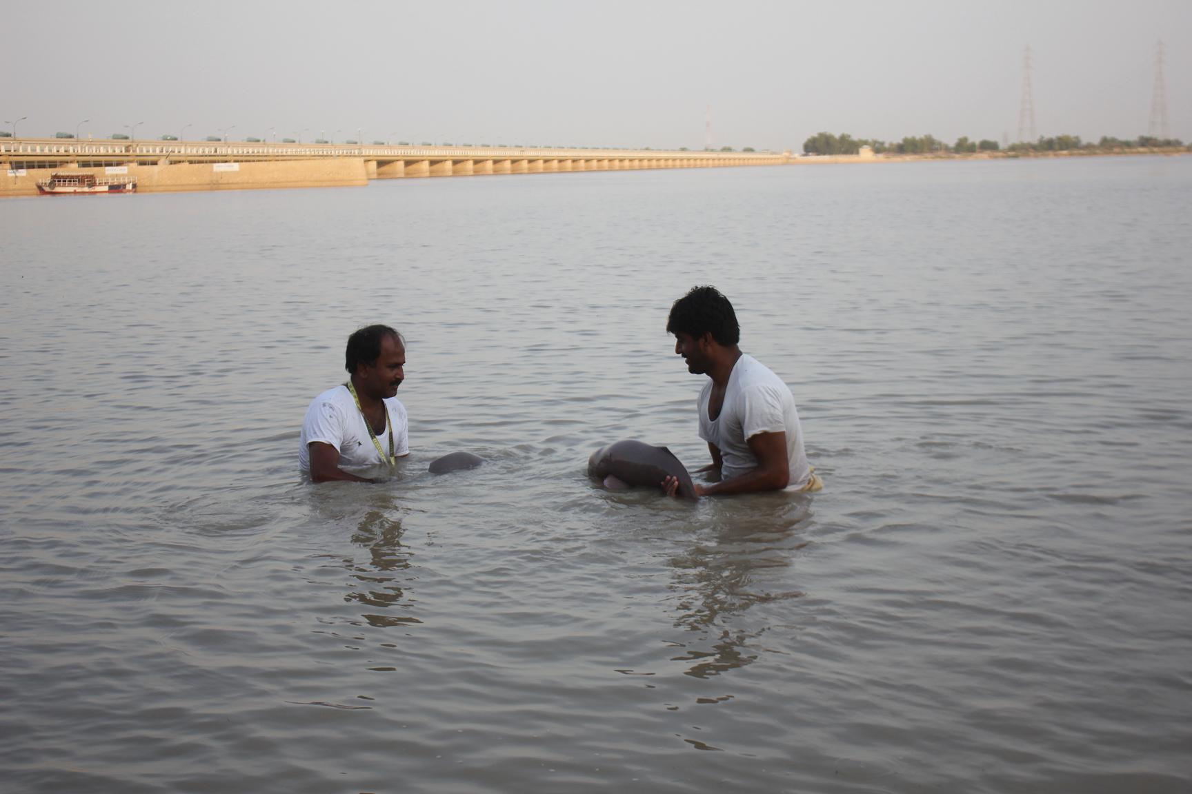 Les équipes conjointes du WWF-Pakistan et du service de la faune de la province du Sind effectuent régulièrement ce genre d’opération. Les dauphins en détresse sont capturés à l’aide de filets spéciaux et précautionneusement posés sur des civières. On les enveloppe de serviettes humides et on les arrose pour éviter qu’ils ne s’assèchent pendant leur transport à bord de fourgonnettes insonorisées jusqu’au bord du fleuve Indus où ils sont relâchés.