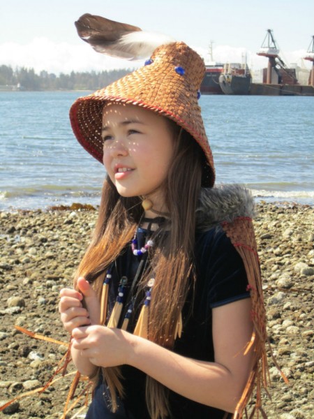 Quand je serai grande, c’est sûr que je vais continuer de m’occuper de ces questions et de me battre. Mais le métier que j’ai l’intention de pratiquer, c’est biologiste de la vie marine. Mon kuk’pa (grand-père en langue sliammon) et mon père m’ont toujours raconté des histoires à propos de la terre, comment elle était autrefois. Mon père me dit que pour déjeuner, il descendait au bord de la mer et mangeait des algues et des œufs de hareng déposés sur les galets. C’était propre, pas pollué. Tout ça était bon à manger. Mais sur cette même plage où il allait autrefois, il y a maintenant des pancartes qui disent que les mollusques sont empoisonnés. Plus personne ne se baigne là parce qu’il y a quelque chose dans l’eau qui fait que les mollusques sont toxiques. Je trouve ça triste, je n’aurai jamais la chance de vivre ce qu’il a vécu. Et je me suis rendu compte que si on ne fait rien, aucune future génération ne pourra vivre une expérience aussi simple que celle de voir des oiseaux migrateurs en vol de formation vers le sud.
