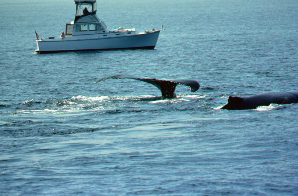 Deux rorquals à bosse (Megaptera novaeangliae) près d’une petite embarcation, Canada. © J. D. Taylor / WWF-Canada