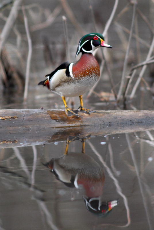 Le canard branchu, Aix sponsa, est un des oiseaux aquatiques les plus colorés nichant au Canada. Grâce à son plumage caractéristique, on peut facilement le repérer dans les milieux humides de l’Ontario, du Québec et des provinces de l’Atlantique. Les mâles adultes pèsent environ 680 g en moyenne et les femelles, 460 g; leurs ailes déployées peuvent atteindre près de 70 cm. Le branchu est l’un des rares canards à posséder des griffes acérées qui lui permettent de se percher sur des branches et de nicher dans les trous des arbres. Il se nourrit essentiellement de végétaux comme des fruits, des graines et des herbes aquatiques, mais il mange aussi des insectes.